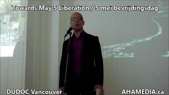> Towards May 5 Liberation / 5 mei bevrijdingsdag Artist talk & media arts installation by Irwin Oostindie > AHA MEDIA sees Towards May 5 Liberation 5 mei bevrijdingsdag by Irwin Oostindie on May 5 2016 in Vancouver (10)