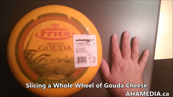 > Slicing a wheel of Gouda Cheese > 1 AHA MEDIA films a wheel of Gouda Cheese being sliced in Vancouver (3)