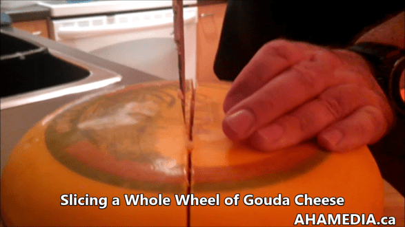 > Slicing a wheel of Gouda Cheese > 1 AHA MEDIA films a wheel of Gouda Cheese being sliced in Vancouver (5)