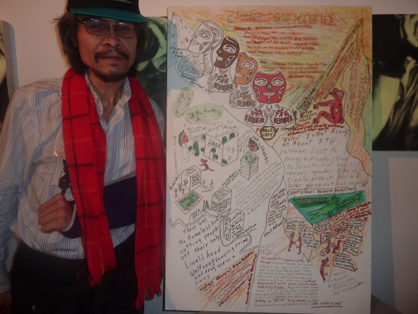 Below is a photo of Alvin Clayton of AHA MEDIA and one of his art pieces that will be in the displayed in New DTES CAN ( DTES Community Arts Network ) Art space for Artwalk Vancouver 2010