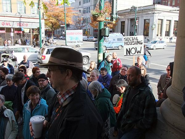 75 + people attended the Gentrification meeting of the Vancouver Downtown Eastside at Carnegie Centre hosted by CCAP – Carnegie Community Action Project