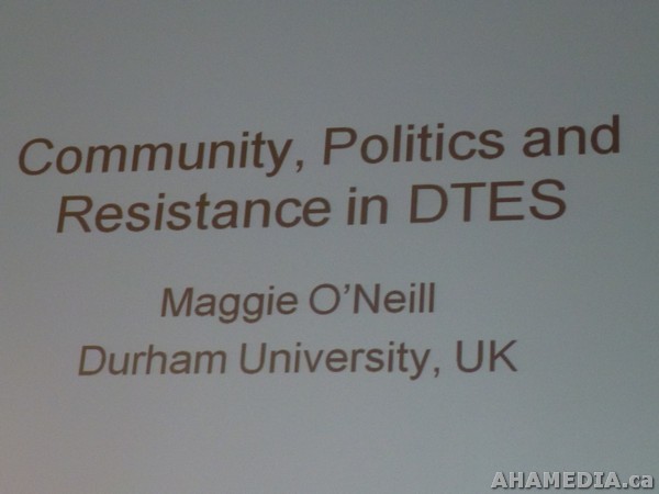 Dr. Maggie O’Neill, researcher from Durham University, will discuss her work in participatory action research and participatory arts, specifically, “Community, Politics and Resistance in Vancouver’s Downtown Eastside: a participatory project”.
