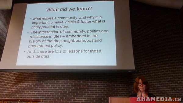AHA MEDIA filmed at COMMUNITY ARTS DIALOGUE: Community, Politics and Resistance in Vancouver’s Downtown Eastside – Part 2 on June 18, 2011