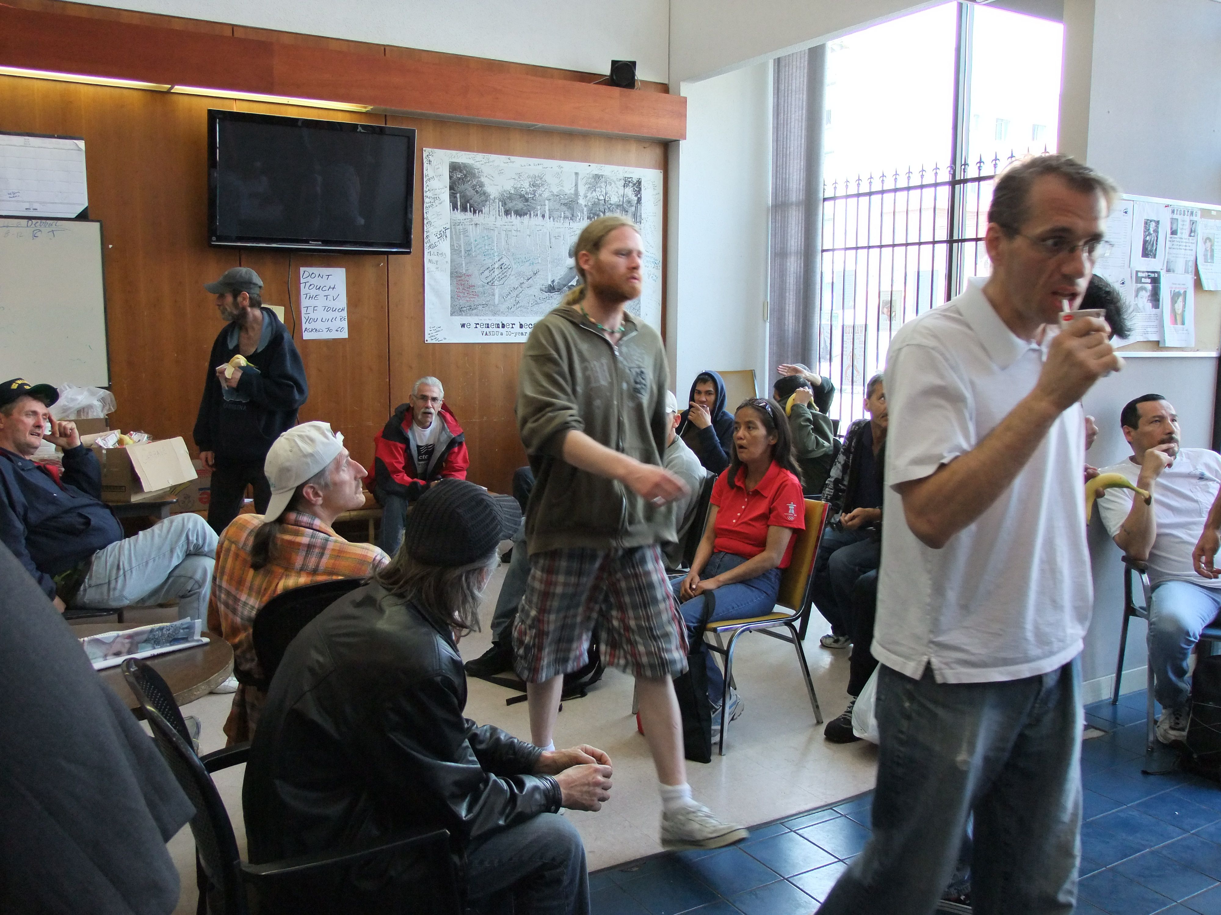 Below is Aiyanas Ormond and Marion Allaart of VANDU helping the members