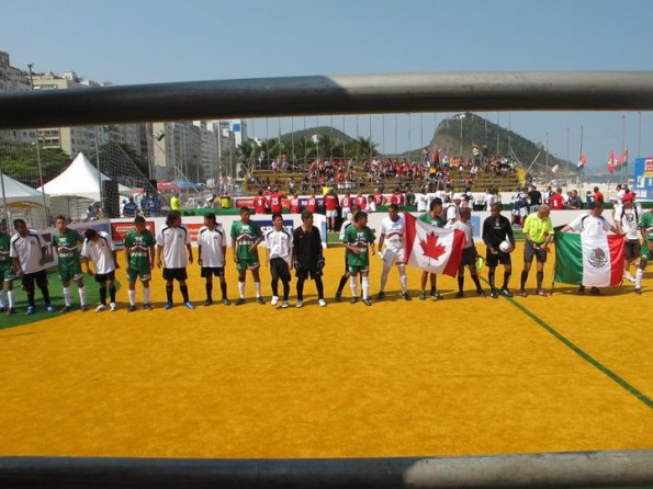 The MVP performance was definitely by goalkeeper Randy Comiso who probably put on the best performance by a Canadian keeper in an international game ever (Craig who?). The Mexicans can really shoot and Randy was getting a piece of everything. Unfortunately, he got too small a piece of one particularly hard shot and had to leave the game with a bad thumb sprain that required a trip to the hospital. For a great account of the Canada-Mexico game see: http://www.homelessworldcup.org/news/canada-2-11-mexico .